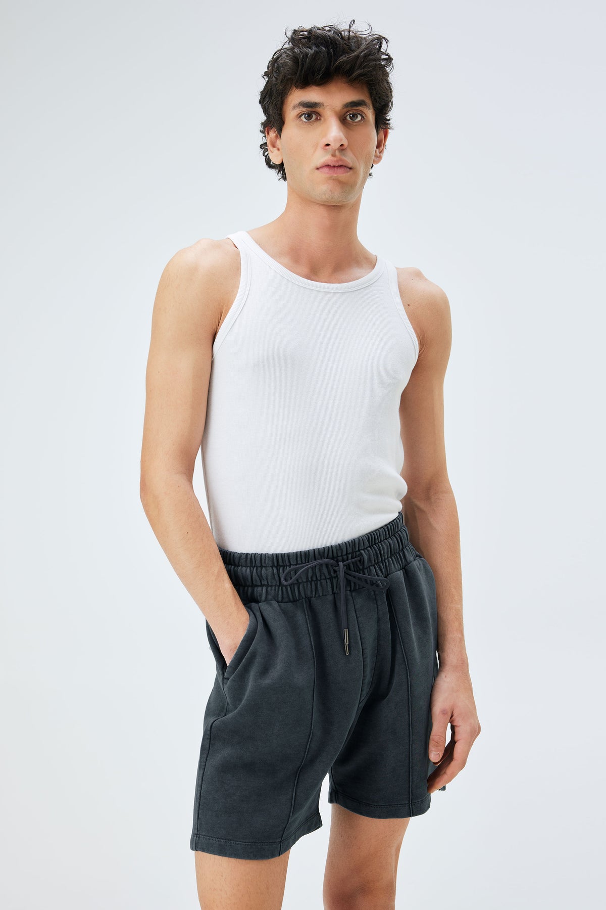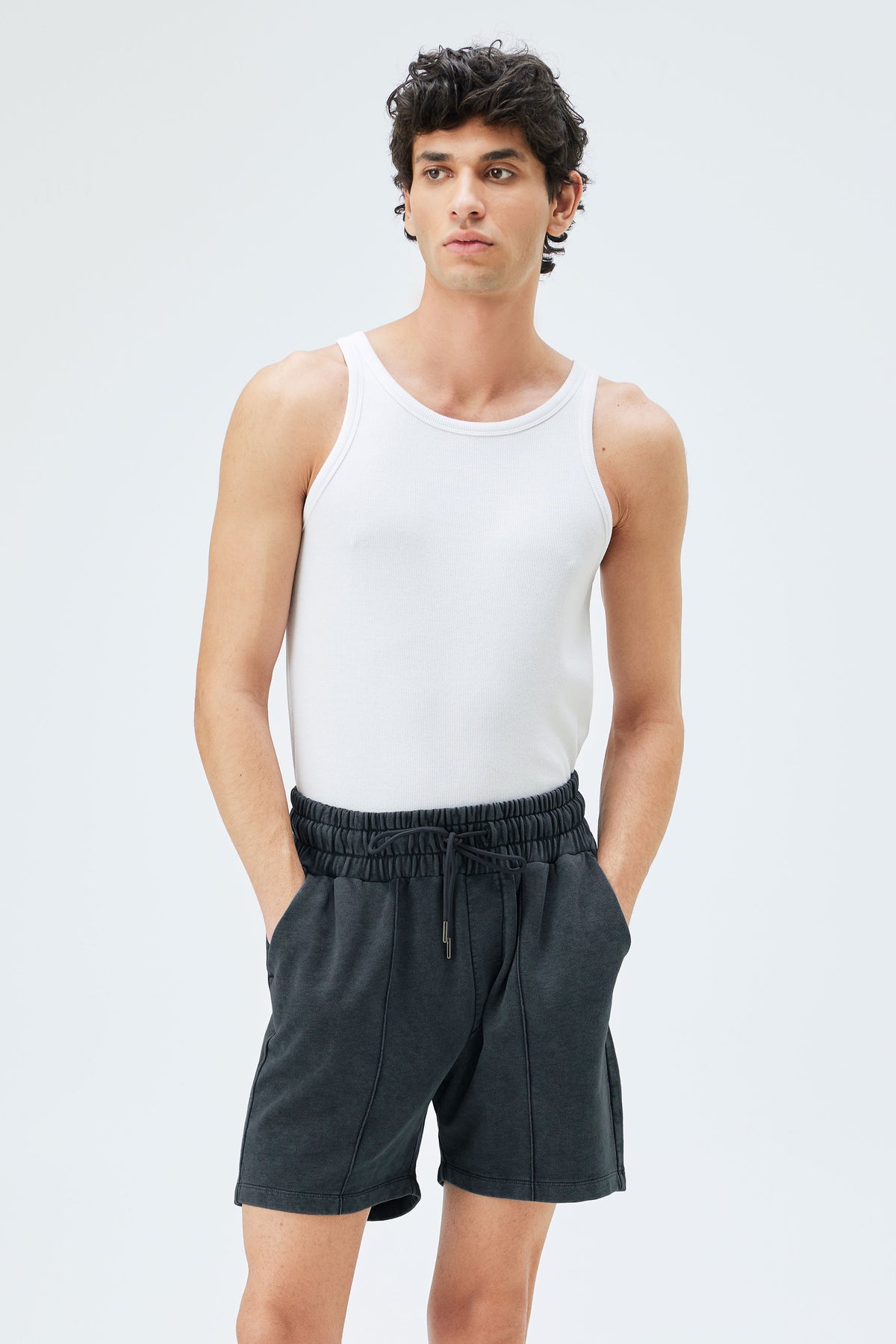 Shorts with a center seam detail.